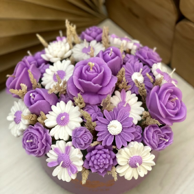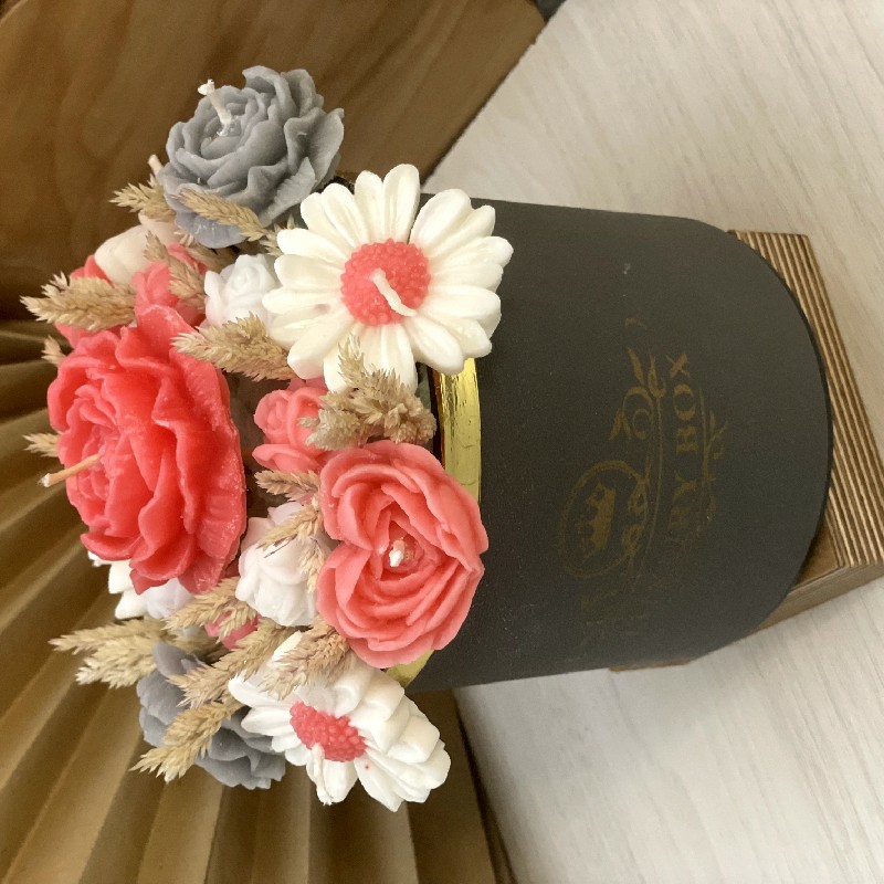 شمعهای دست ساز ساحته شده از پارافین باکیفیت فیمت باکس بنفش 870،باکس چوبی صورتی650، باکی طوسی پررنگ450