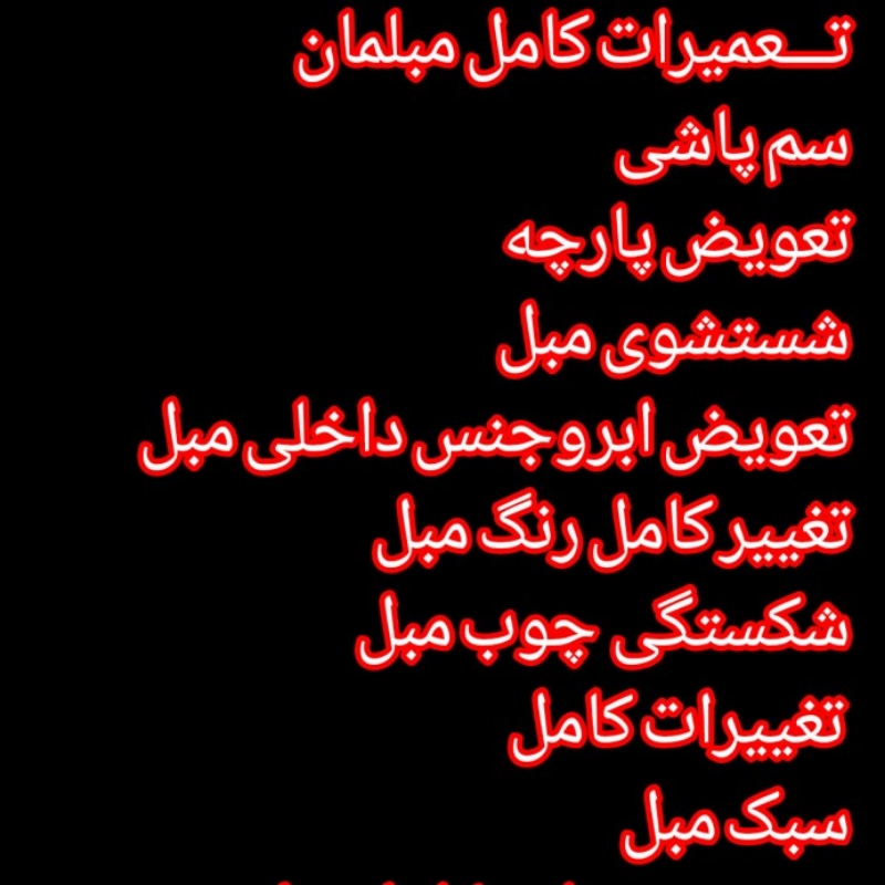 تعمیرات کامل مبلمان تعویض پارچه تعویض ابر و بار شستشوی مبل شکستگی مبل رنگ امیزی مبل