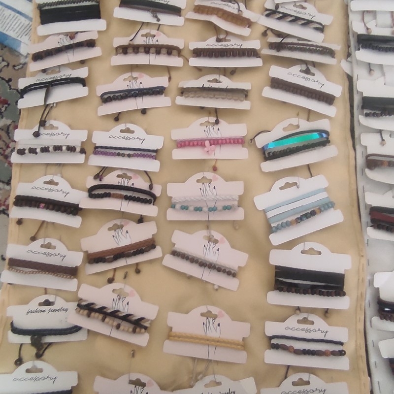 سلام دسبند زیاد دارم کار دست خودمه عمده وتک میدم دونه ای 30تومن عمده 20تومن کار واسه مغازه خیلی خوبه نخ موم زدست باره نمیشه و گره کار کشویی هست همه سایز سایز میشه تخفیف هم داره تماس بگیرید صحبت کنیم زیر قیمت میدم میخوام کارو جمع کنم بچگونه زنونه و مردونه