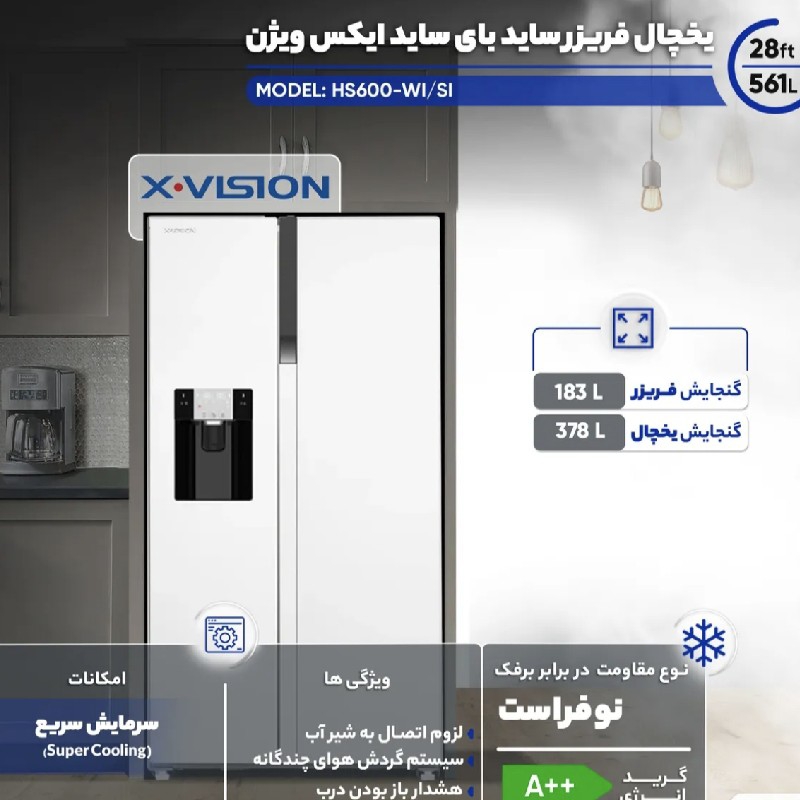 ساید بای ساید ایکس ویژن 28 فوت رنگ سفید گارانتی مادیران قیمت مصرف کننده 122.000.000 میلیون تومان قیمت با جشنواره 86.900.000 میلیون تومان فروشگاه بورس کالا 09199329920 صادقی خواه