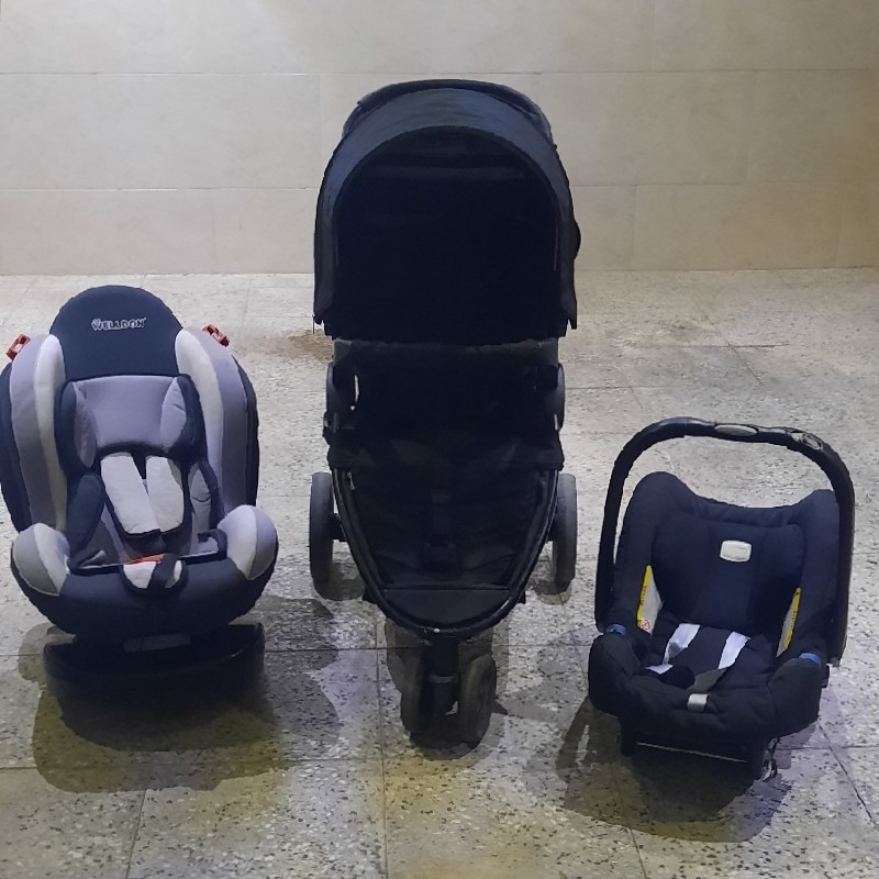 کالسکه و کریر برند بریتکس می باشد کریر روی کالسکه نسب می شود کالسکه تاشو می باشد و صندلی ماشین در حد نو می باشد